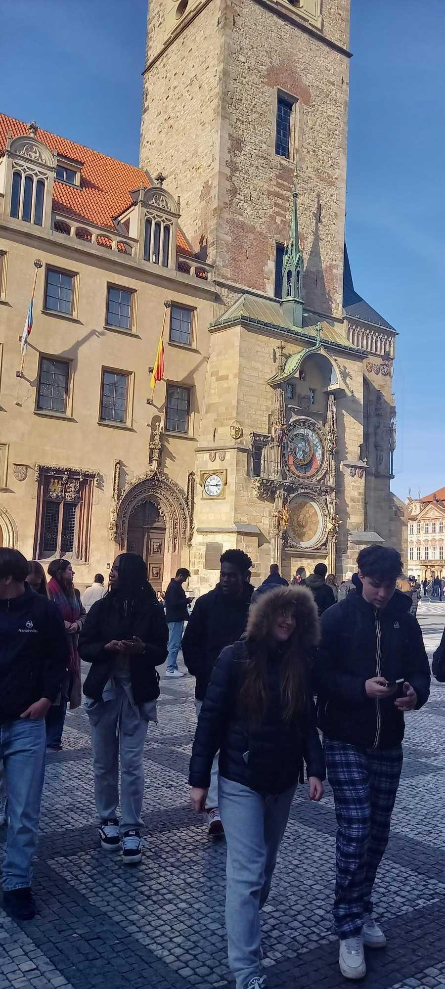 A peine arrivé, ils ont rejoint leur guide pour une visite guidée de la vieille ville de Prague ( Horloge astronomique, façades remarquables, tour poudrière, maison de la vierge noire, théâtre, pont Charles..Une visite qui a durée au total deux heures et demie. Ils ont ensuite déjeuné et se sont promené sur la Voie Royale (Pont Charles, l'Ile Kampa, Place de la Mala Strana).